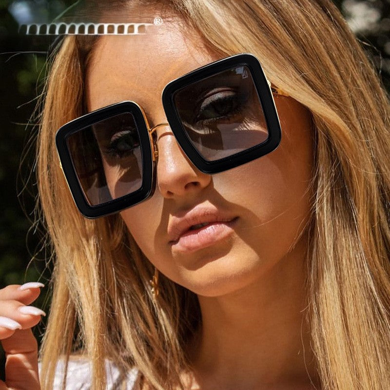 Square Frame Black Sunglasses Trimmed in Gold